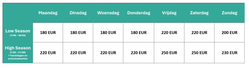 Er is een waarborg van 250 EUR die per overschrijving dient betaald te worden.